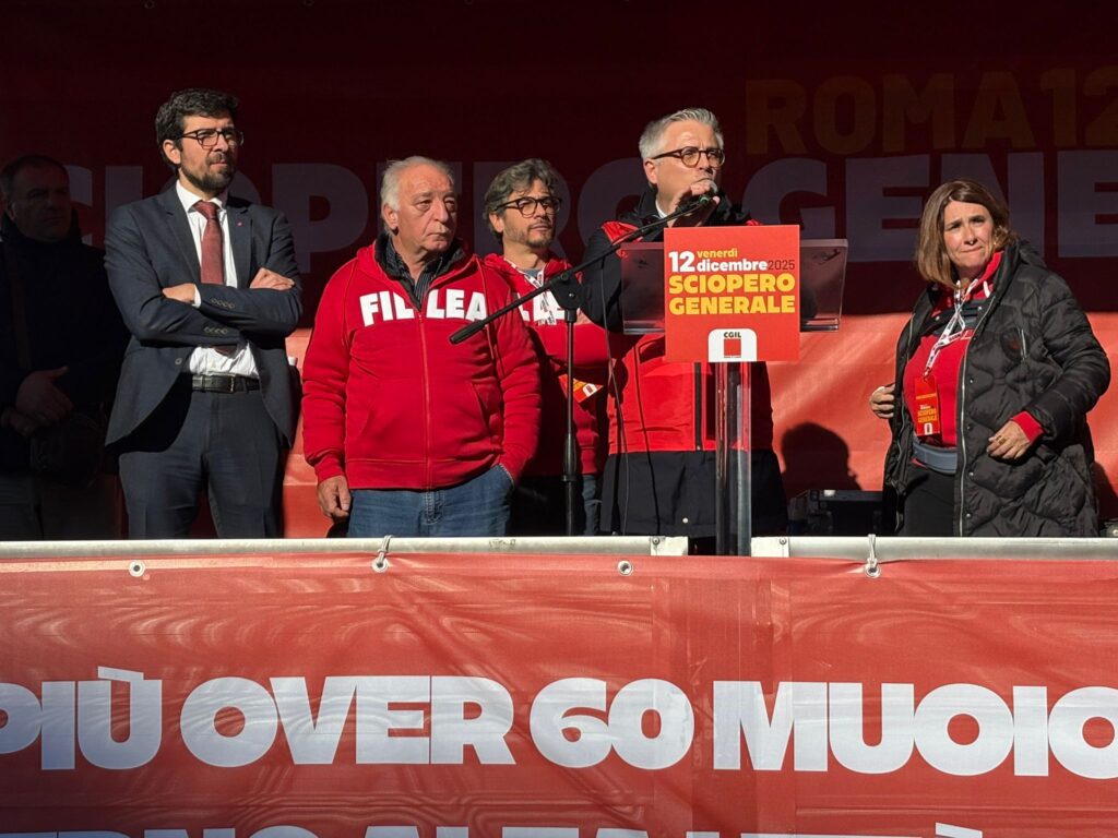 ROMA, 12 Dicembre – La Capitale si è fermata oggi per lo Sciopero Generale di 24 ore indetto dalla CGIL, ma il grande corteo che ha attraversato le strade, partito da Piazza Vittorio e diretto simbolicamente verso la Torre dei Conti, ha trasformato la protesta contro la Legge di Bilancio in un grido commosso e potente per la sicurezza sul lavoro. Diego Piccoli, Segretario generale di Fillea Cgil Roma e Lazio, soddisfatto dichiara:“Siamo e saremo in piazza contro una legge finanziaria che non dà risposte su salari, pensioni e sicurezza sul lavoro. Abbiamo scelto un luogo simbolico per non abbassare la guardia, e non indietreggiare di un passo su questo. Sicuri di tornare a casa per noi non è solo uno slogan per la nostra campagna, ma la base e il prerequisito per qualunque rapporto. Il governo toglie a che già ha poco, il sindacato lotta per un paese più giusto.”